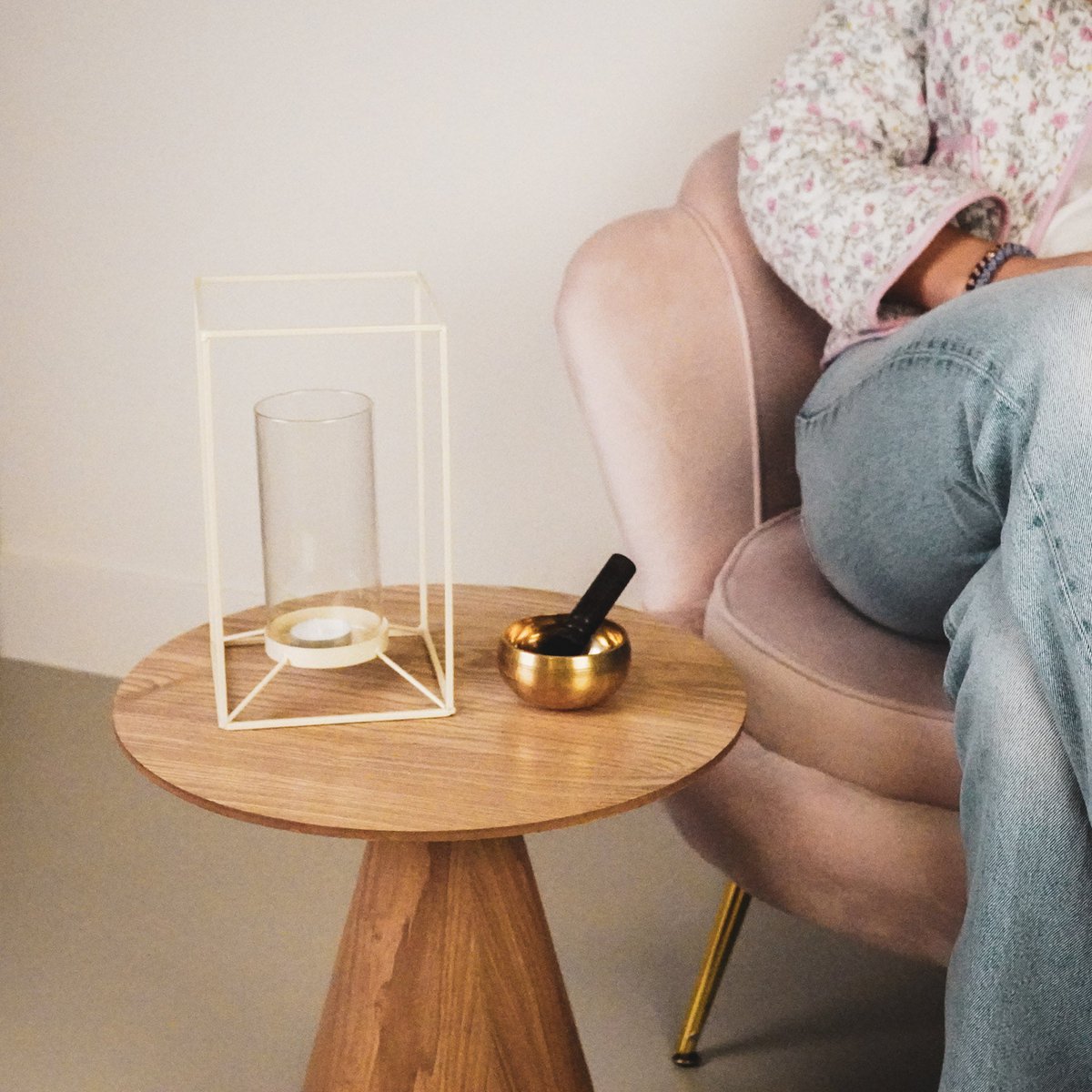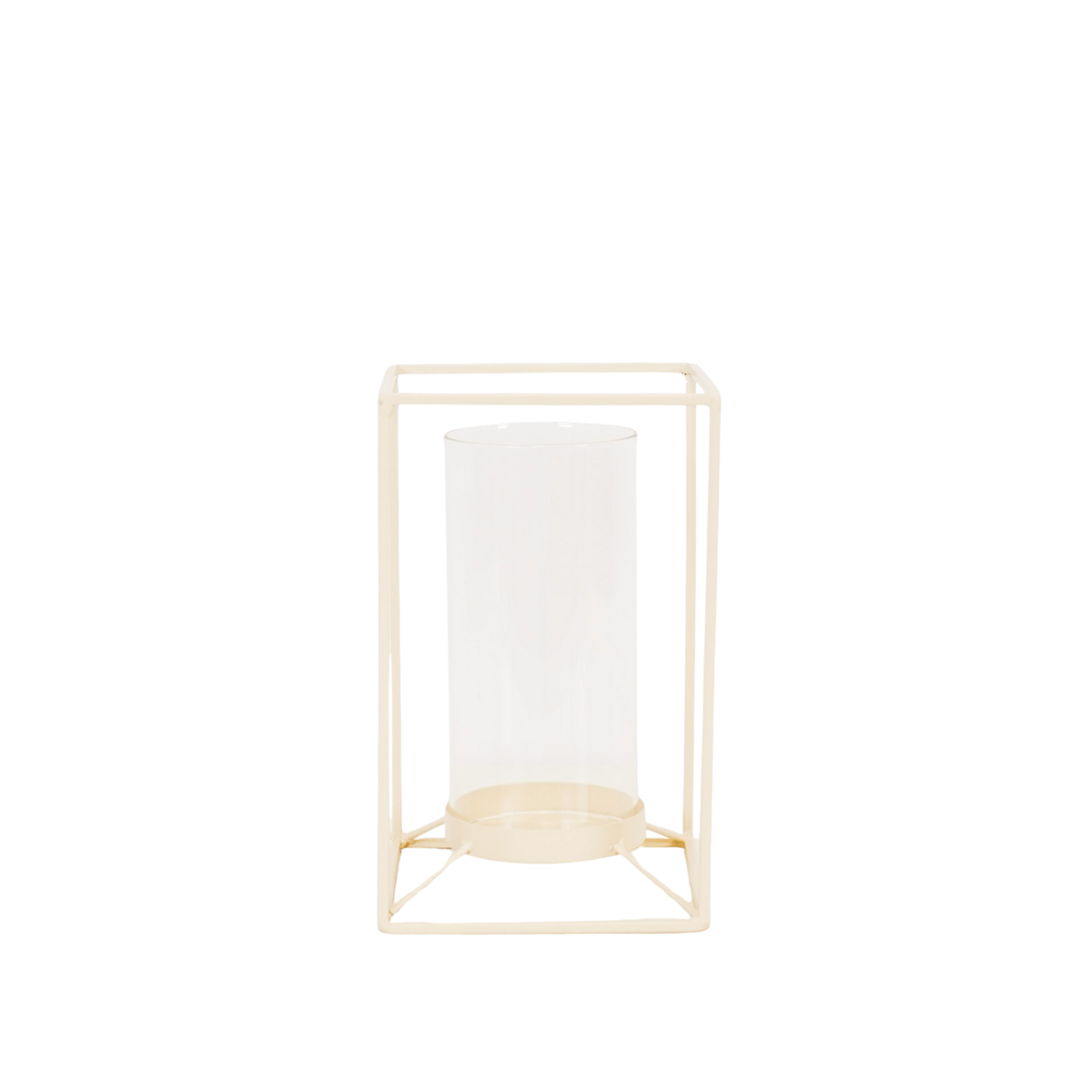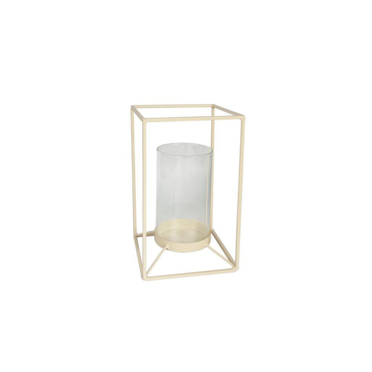 Lantaarn - metaal/glas - zand - 14,5x14,5x25cm