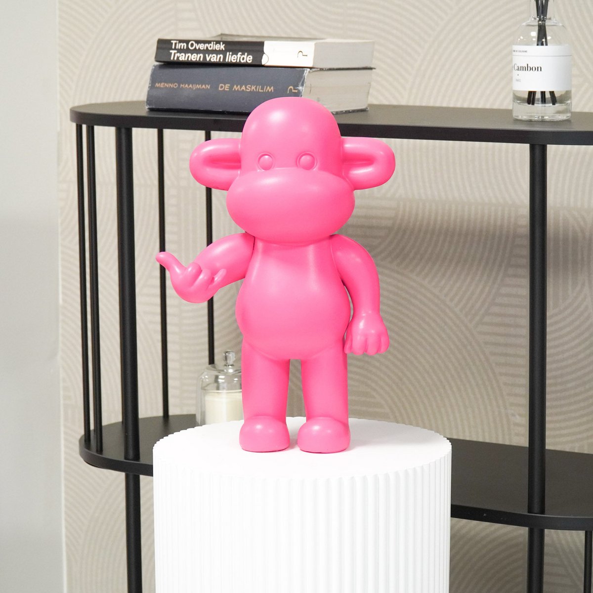 Ornament - hang losse aap beeldje 'de legende' - polyresin - roze - 33x21x50cm