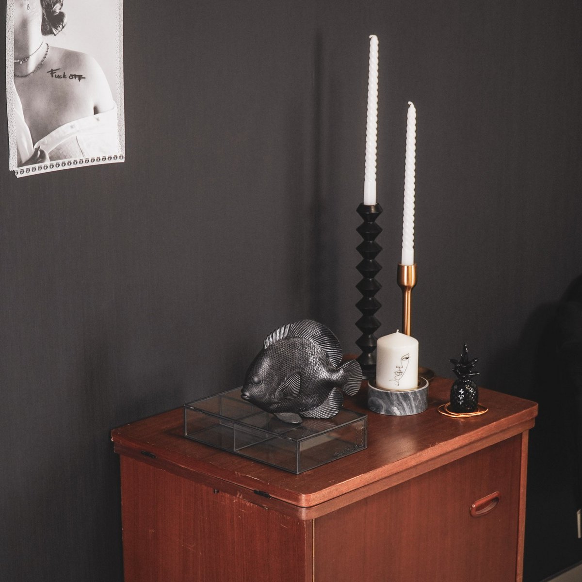 Ornament - Platte Vis - Polyresin - Zwart - 19,5x10,5x16cm