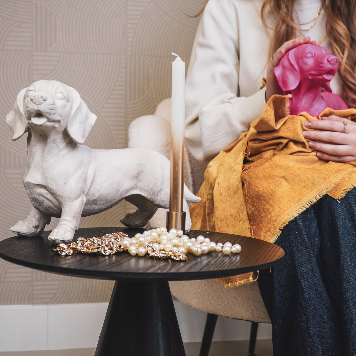 Wie liet de honden uit? Woef Woef Woef! Deze teckel wil niets liever dan thuis blijven. Met jou. Belangrijke kenmerken: - Gemaakt van polyresin - Afmeting: 20x8x15cm Stylingtip: Laat dit hondenbeeldje lekker chillen op een plek waar je hem kunt zien. Wij zorgen ervoor dat hij je altijd laat lachen.