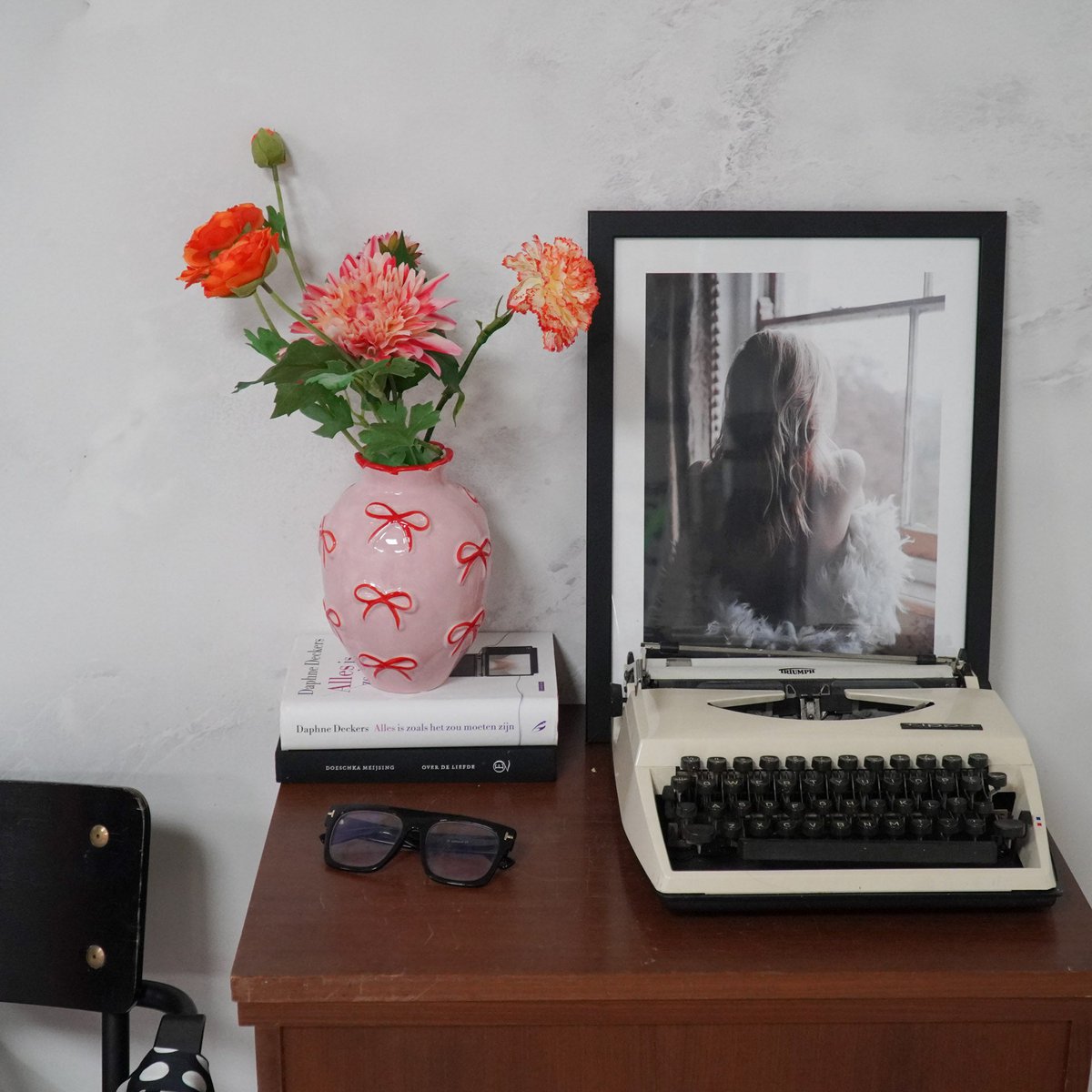 Gebonden! - Voeg een speelse en vrolijke aanraking aan je interieur toe met deze charmante Dolomite -bloemenvaas, versierd met schattige kleine bogen. De compacte grootte van 13,5x13,5x19cm maakt deze vaas perfect voor een klein boeket of een enkele bloem, terwijl het unieke boogontwerp een extra zoet en stijlvol accent toevoegt. Deze vaas is niet alleen een functioneel item voor het weergeven van uw bloemen, maar ook een decoratief pronkstuk dat warmte en gezelligheid in elke ruimte brengt. Gemaakt van duurzaam dolomiet, het is stevig en waterdicht, ideaal voor dagelijks gebruik. Belangrijke kenmerken:- Materiaal: duurzame dolomiet-decoratie: speelse bogen rondom- afmetingen: 13,5x13,5x19cm- waterdichte en stevige stylingtip: combineer deze vaas met zachte pastelkleurige bloemen voor een zachte, romantische look of met heldere bloemen voor een opgewekt en opvallend effect. Zelfs zonder bloemen is deze vaas met bogen een charmante toevoeging aan je interieur! Styling -tip