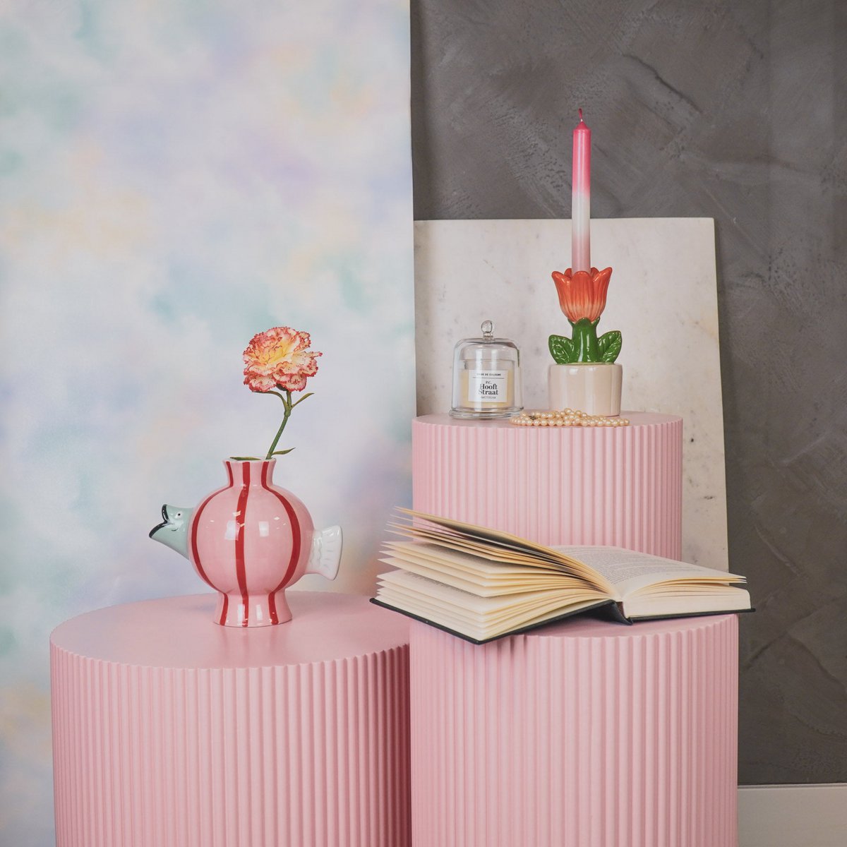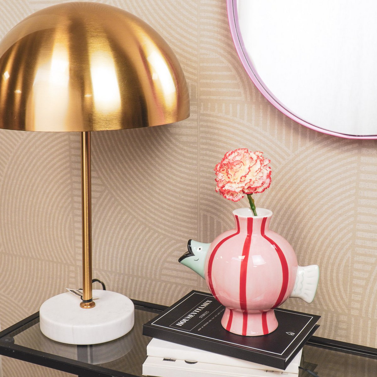 Vaas - Fish -Dolomite -Pink/Mint/Red -21.5x13x17cm