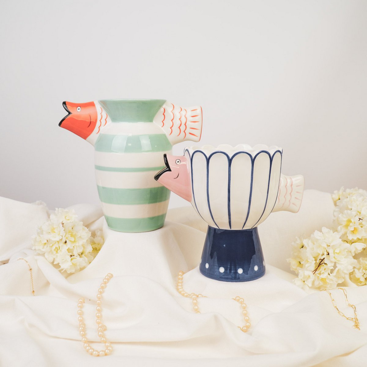 Net als een vis in de zee- kun je nooit genoeg vazen hebben, en deze visvaas gemaakt van keramiek is een kunstwerk. De vis lijkt door de vaas te zwemmen en trekt onmiddellijk het oog. Je hoeft er misschien niet eens bloemen in te stoppen. Belangrijkste kenmerken: Gemaakt van: DolomitedImensions: 21x13.5x18cm Styling Tip: laat de vaas met de vis ergens schijnen; Het heeft niet veel anders nodig