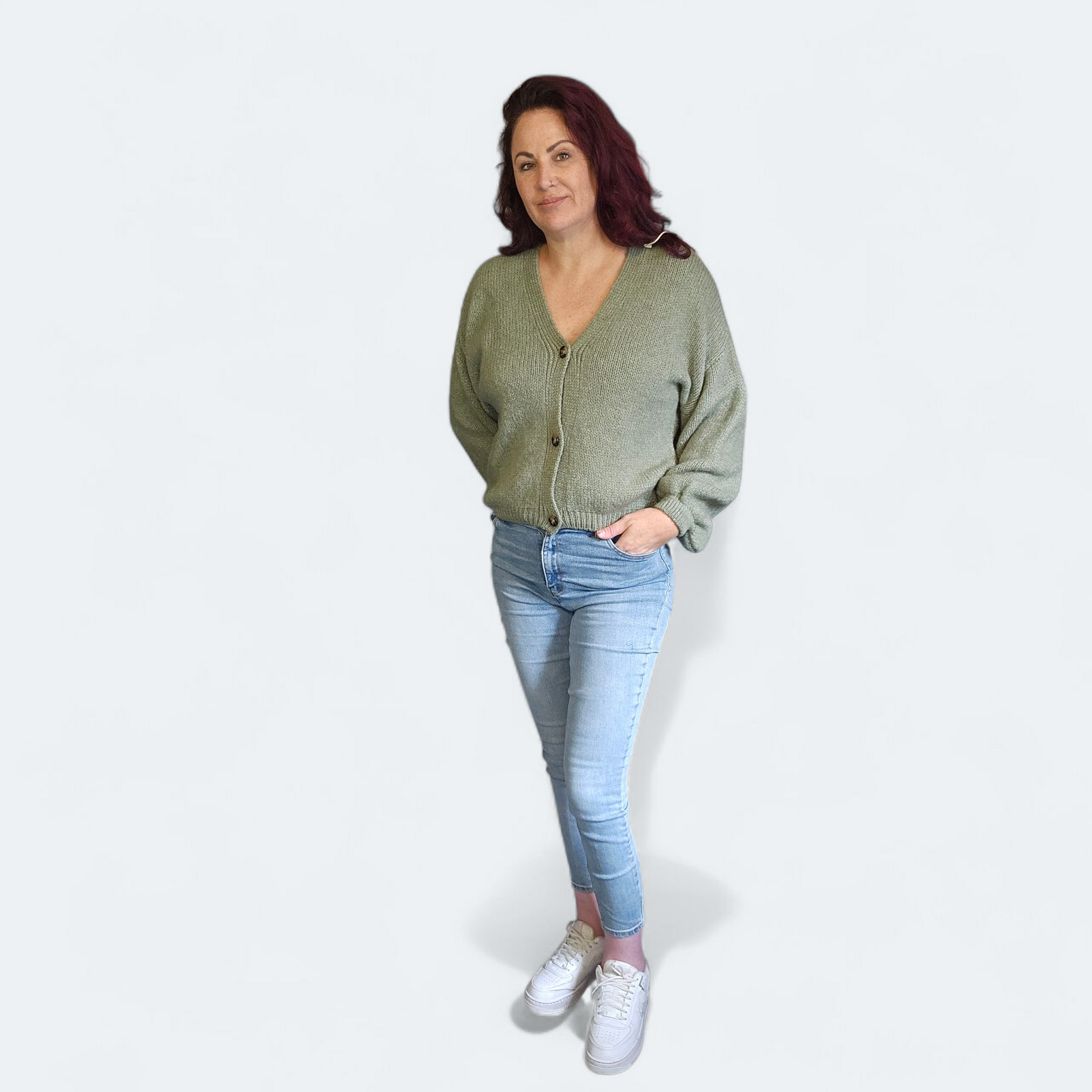 Mooi groen vest met 3 knopen en subtiele pofmouwtjes